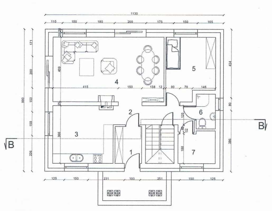 8. Likwidacja kominów wentylacji grawitacyjnej i zaprojektowanie wentylacji mechanicznej (rozprowadzenie kanałów w podłodze poddasza, nie w skosach nad poddaszem, centrala wentylacyjna na parterze w pomieszczeniu 7)
